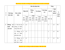 Mức độ nhận thức Tổng Thời Thông Vận dụng Nhận biết Vận dụng Số CH gian hiểu cao % T Nội dung Đơn vị kiến (phút) tổng T kiến thức thức Thời điểm Thời Thời Thời Số Số gian Số Số gian gian gian TN TL CH CH (phút CH CH (phút) (phút) (phút) ) 1