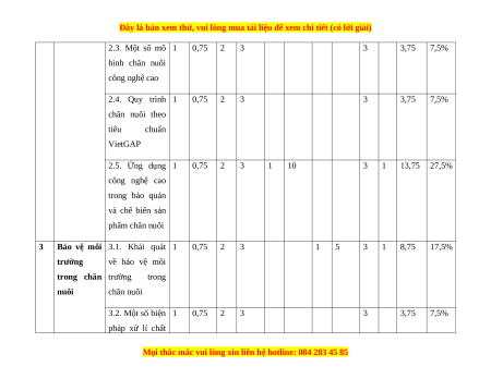 2.3. Một số mô 1 0,75 2 3 3 3,75 7,5% hình chăn nuôi công nghệ cao 2.4. Quy trình 1 0,75 2 3 3 3,75 7,5% chăn nuôi theo tiêu chuẩn VietGAP 2.5. Ứng dụng 1 0,75 2 3 1 10 3 1 13,75 27,5% công nghệ cao trong bảo quản và chế biến sản phẩm chăn nuôi 3