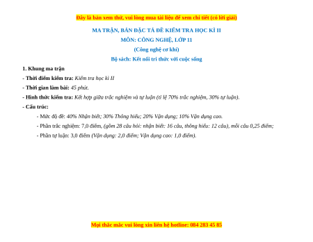 - Tailieugiaovien.com.vn giới thiệu bộ đề cuối kì 2 gồm đầy đủ ma trận và lời giải chi tiết môn Công ngệ cơ khí 11 Kết nối tri thức mới nhất nhằm giúp Giáo viên có thêm tài liệu tham khảo ra đề thi Công nghệ lớp 11.