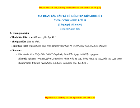 - Tailieugiaovien.com.vn giới thiệu bộ đề giữa kì 1 gồm đầy đủ ma trận và lời giải chi tiết môn Công nghệ chăn nuôi 11 Cánh diều mới nhất năm 2023 nhằm giúp Giáo viên có thêm tài liệu tham khảo ra đề thi Công nghệ lớp 11.