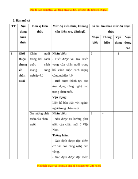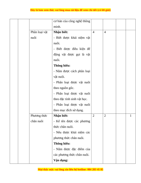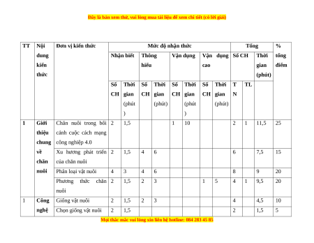 chung công nghiệp 4.0 về Xu hương phát triển 2 1,5 4 6 6 7,5 15 chăn của chăn nuôi nuôi Phân loại vật nuôi 4 3 4 6 8 9 20 Phương thức chăn 2 1,5 2 3 1 5 4 1 9,5 20 nuôi 1