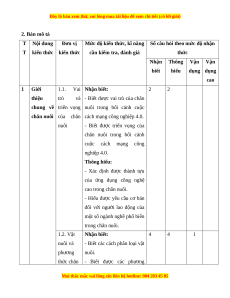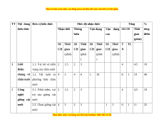 Số Thời Số Thời Số Thời Số Thời T TL CH gian CH gian CH gian CH gian N (phút) (phút (phút (phút) ) ) 1 Giới 1.1. Vai trò và triển 2 1,5 2 3 4 4,5 10 thiệu vọng của chăn nuôi