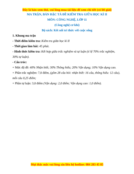 - Tailieugiaovien.com.vn giới thiệu bộ đề giữa kì 2 gồm đầy đủ ma trận và lời giải chi tiết môn Công ngệ cơ khí 11 Kết nối tri thức mới nhất năm 2023 nhằm giúp Giáo viên có thêm tài liệu tham khảo ra đề thi Công nghệ lớp 11.