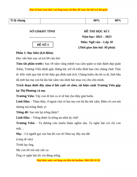 Môn: Ngữ văn – Lớp 10 ĐỀ SỐ 3