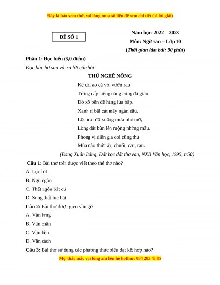 Đọc bài thơ sau và trả lời câu hỏi: THÚ NGHỀ NÔNG