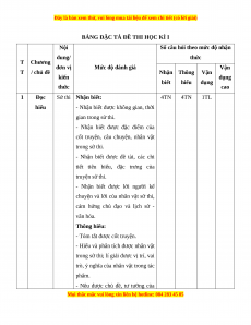 BẢNG ĐẶC TẢ ĐỀ THI HỌC KÌ I