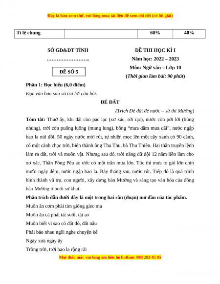 Môn: Ngữ văn – Lớp 10 ĐỀ SỐ 5
