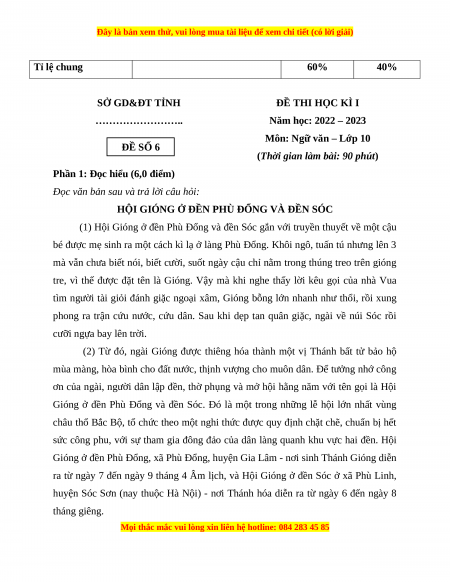 Môn: Ngữ văn – Lớp 10 ĐỀ SỐ 6