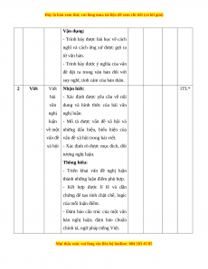 Nhận biết Thông hiểu Vận dụng % T năng cao điểm TN TL TN TL TN TL TN TL Đọc Thơ/ thơ trữ 1 3 0 5 0 0 2 0 0 60 hiểu tình Viết bài văn nghị luận về 2 Viết 0 1* 0 1* 0 1* 0 1* 40 một vấn đề xã hội Tổng 15 5 25 15 0 30 0 10 Tỉ lệ % 20% 40% 30% 10% 100% Tỉ lệ chung 60% 40%