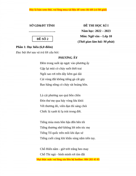 Môn: Ngữ văn – Lớp 10 ĐỀ SỐ 2