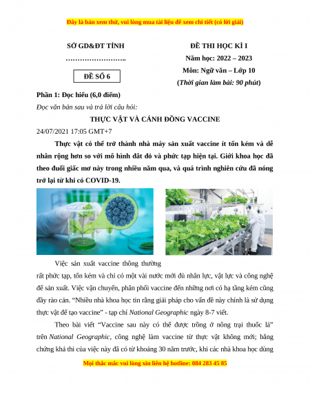 Môn: Ngữ văn – Lớp 10 ĐỀ SỐ 6