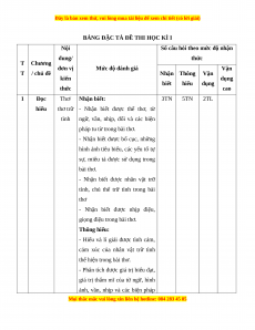 BẢNG ĐẶC TẢ ĐỀ THI HỌC KÌ I