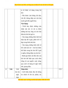 Số câu hỏi theo mức độ nhận dung/ thức T Chương đơn vị Mức độ đánh giá Vận T / chủ đề Nhận Thông Vận kiến dụng biết hiểu dụng thức cao 1 Đọc Thơ/ Nhận biết: 3TN 5TN 2TL hiểu