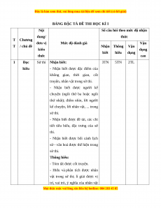 Số câu hỏi theo mức độ nhận dung/ thức T Chương đơn vị Mức độ đánh giá Vận T / chủ đề Nhận Thông Vận kiến dụng biết hiểu dụng thức cao 1 Đọc Sử thi Nhận biết: 3TN 5TN 2TL hiểu
