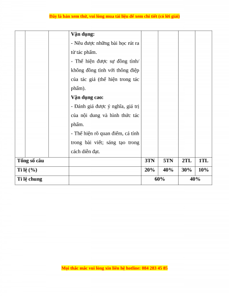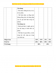 trong bài viết; sáng tạo trong cách diễn đạt. Tổng số câu 3TN 5TN 2TL 1TL Tỉ lệ (%) 20% 40% 30% 10% Tỉ lệ chung 60% 40%