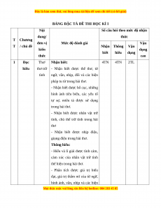 BẢNG ĐẶC TẢ ĐỀ THI HỌC KÌ I