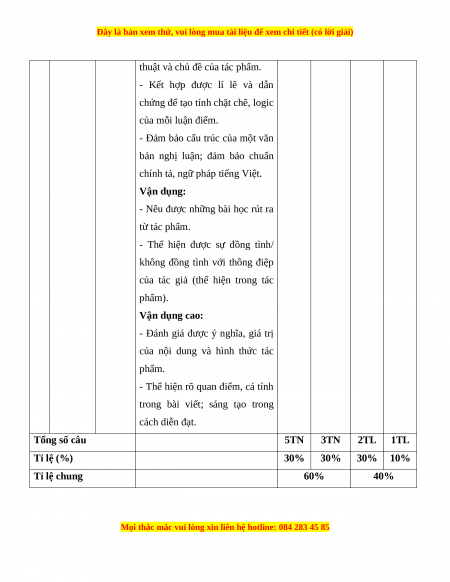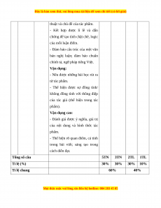 trong bài viết; sáng tạo trong cách diễn đạt. Tổng số câu 5TN 3TN 2TL 1TL Tỉ lệ (%) 30% 30% 30% 10% Tỉ lệ chung 60% 40%