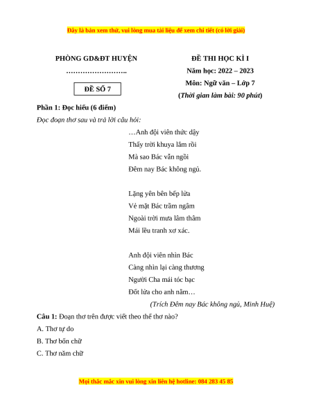- Tailieugiaovien.com.vn giới thiệu bộ đề cuối học kì 1 Ngữ Văn 7 Chân trời sáng tạo mới nhất nhằm giúp Giáo viên có thêm tài liệu tham khảo ra đề thi Ngữ Văn lớp 7.