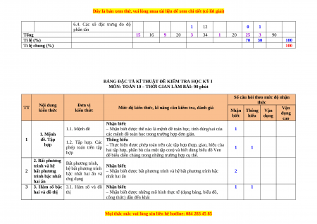 BẢNG ĐẶC TẢ KĨ THUẬT ĐỀ KIỂM TRA HỌC KỲ I
