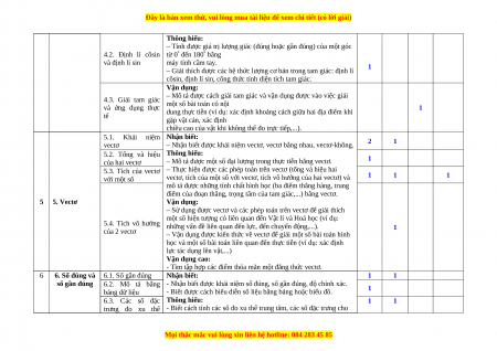 4.2. Giải tam giác và ứng dụng 1 7 1 0 thực tế 5.1. Khái niệm vectơ 2 2 1 2 3 0