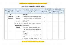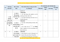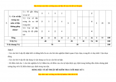 Đơn vị kiến thức tổng thức Thời Thời Thời Thời gian Số Số Số Số điểm gian gian gian gian TN TL (phút) CH CH CH CH (phút) (phút) (phút) (phút) 1.1. Mệnh đề 1 1,5 1 1. 1.2. Tập hợp và 1 5 6 và tập hợp> các phép toán trên 1 1,5 1 2 2 tập hợp 2 2. 2.1. Bất phương 1 2 1 4 4