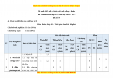 Đơn vị kiến thức tổng thức Thời Thời Thời Thời gian Số Số Số Số điểm gian gian gian gian TN TL (phút) CH CH CH CH (phút) (phút) (phút) (phút) 1.1. Mệnh đề 1 1,5 1 1. 1.2. Tập hợp và 1 5 6 và tập hợp> các phép toán trên 1 1,5 1 2 2 tập hợp 2 2. 2.1. Bất phương 1 2 1 4 4