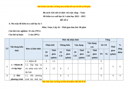 Đề kiểm tra cuối học kì 1 năm học 2022 – 2023 ĐỀ SỐ 4