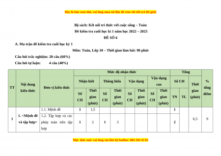 Đề kiểm tra cuối học kì 1 năm học 2022 – 2023 ĐỀ SỐ 6