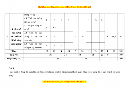 phẳng tọa độ 4.5. Tích vô hướng 1 2 1 3 1 15 2 của hai vectơ 5.1. Số gần đúng và 1 1,5 1 5. sai số đặc trưng 5.2. Các số đặc 5 của mẫu số trưng đo xu thế 1 2 1 10 1 1 18,5 22 liệu không trung tâm