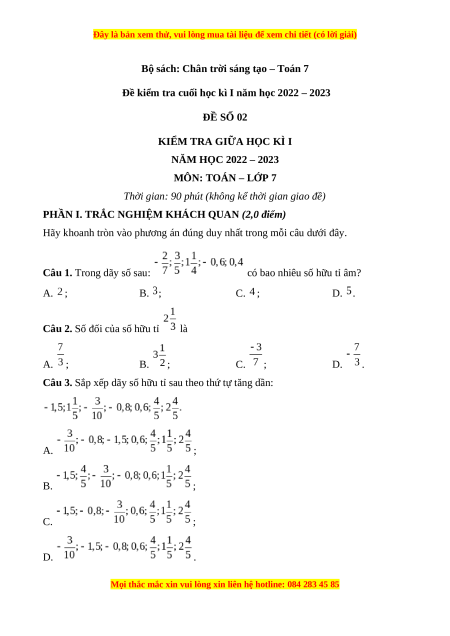 Đề kiểm tra cuối học kì I năm học 2022 – 2023 ĐỀ SỐ 02