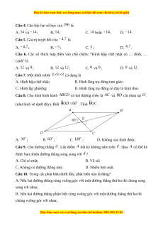 Câu 9. Cho đường thẳng . Lấy điểm bất kỳ không nằm trên . Qua có thể kẻ