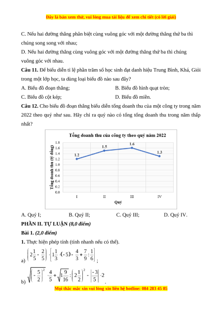 Câu 12. Cho biểu đồ đoạn thẳng biểu diễn tổng doanh thu của một công ty trong năm