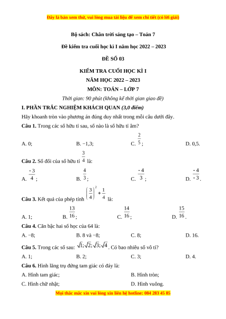 Đề kiểm tra cuối học kì I năm học 2022 – 2023 ĐỀ SỐ 03