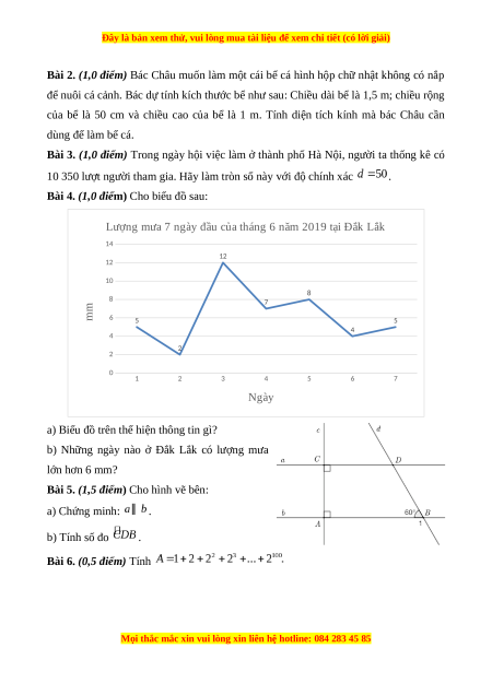 Bài 4. (1,0 điểm) Cho biểu đồ sau: