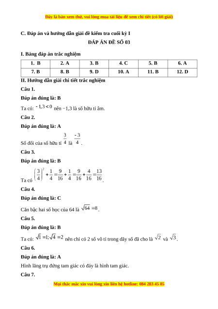 Câu 1. Trong các số hữu tỉ sau, số nào là số hữu tỉ âm? A. 0; B. −1,3; C. ; D. 0,5.
