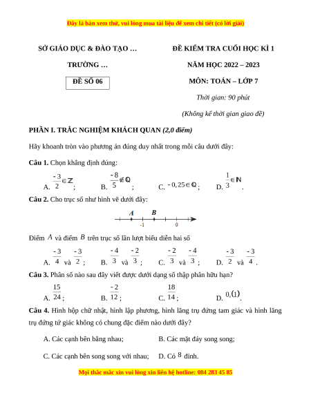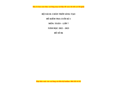 NĂM HỌC 2022 – 2023 ĐỀ SỐ 06 MÔN: TOÁN – LỚP 7 Thời gian: 90 phút