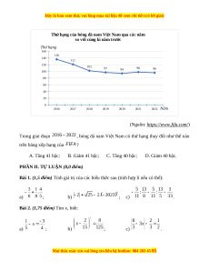Câu 8. Biểu đồ dưới đây cho biết thứ hạng của bóng đá nam Việt Nam qua các năm