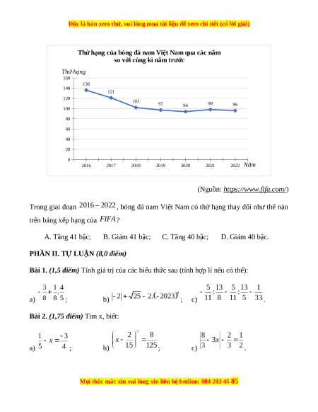 Bài 1. (1,5 điểm) Tính giá trị của các biểu thức sau (tính hợp lí nếu có thể): a) ; b) ; c) .