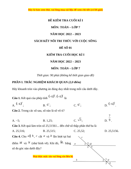 - Tailieugiaovien.com.vn giới thiệu bộ đề cuối học kì 1 Toán 7 bộ Kết nối tri thức mới nhất nhằm giúp Giáo viên có thêm tài liệu tham khảo ra đề thi Toán lớp 7.
