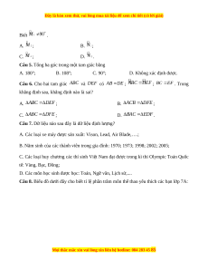 Câu 6. Cho hai tam giác và có ; ; . Trong