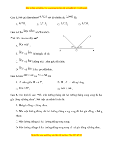không phải là hai góc đối đỉnh; D. và là hai góc đối đỉnh. Câu 7. Nếu và thì: A. nằm giữa và ; B. , , thẳng hàng; C. ; D. .