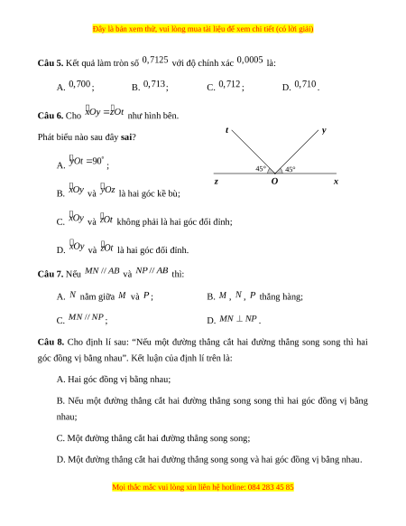 Đây là bản xem thử, vui lòng mua tài liệu để xem chi tiết (có lời giải)