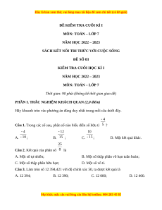 NĂM HỌC 2022 – 2023 MÔN: TOÁN – LỚP 7