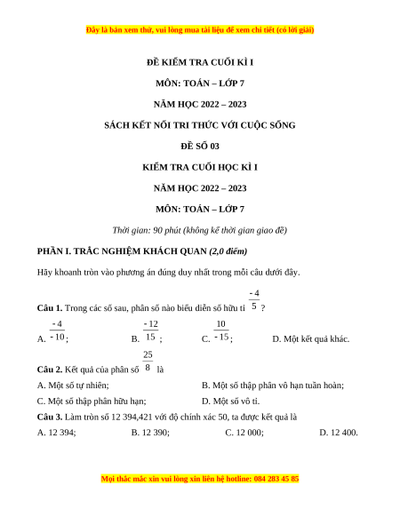 SÁCH KẾT NỐI TRI THỨC VỚI CUỘC SỐNG ĐỀ SỐ 03