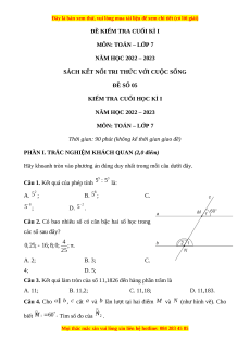 NĂM HỌC 2022 – 2023 MÔN: TOÁN – LỚP 7