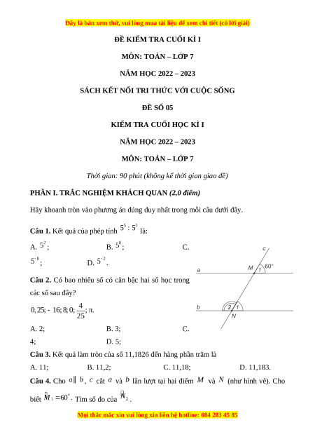 SÁCH KẾT NỐI TRI THỨC VỚI CUỘC SỐNG ĐỀ SỐ 05
