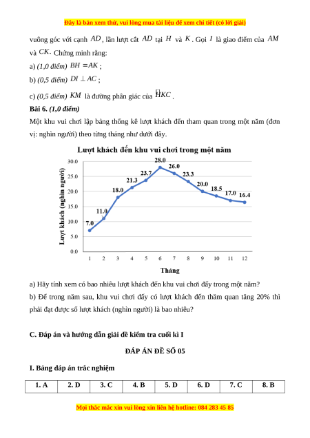 C. Đáp án và hướng dẫn giải đề kiểm tra cuối kì I ĐÁP ÁN ĐỀ SỐ 05