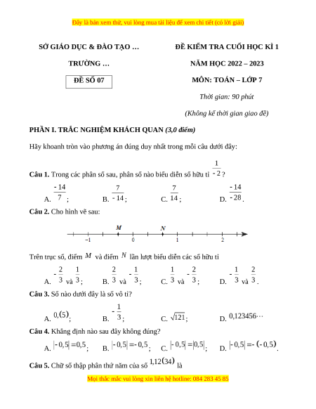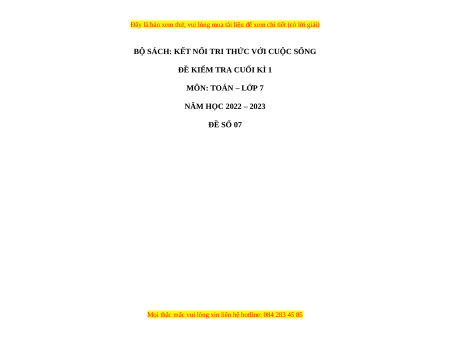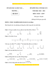 NĂM HỌC 2022 – 2023 ĐỀ SỐ 07 MÔN: TOÁN – LỚP 7 Thời gian: 90 phút