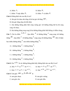 D. Hai đường thẳng song song là hai đường thẳng phân biệt không có điểm chung. Câu 7. Cho ba điểm