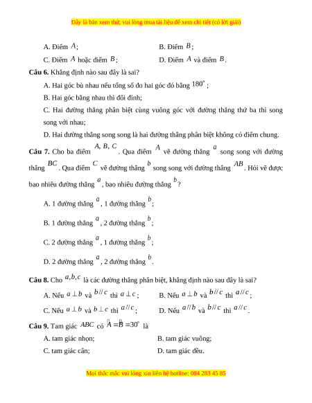 Đây là bản xem thử, vui lòng mua tài liệu để xem chi tiết (có lời giải) A. Điểm ; B. Điểm ; C. Điểm hoặc điểm ; D. Điểm và điểm .